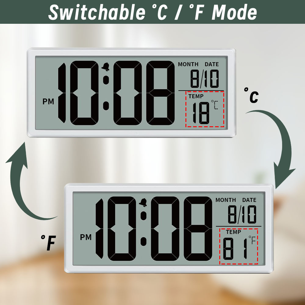 • Imotion 14.5'' Big Digital Wall Clock Powered by Batteries with Oversized Digits, Displays Temperature And Date - Easy to View And Adjust, Automatic Daylight Saving Time
