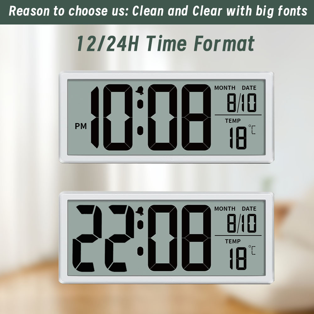 Imotion 14.5'' Big Digital Wall Clock Powered by Batteries with Oversized Digits, Displays Temperature And Date - Easy to View And Adjust, Automatic Daylight Saving Time
